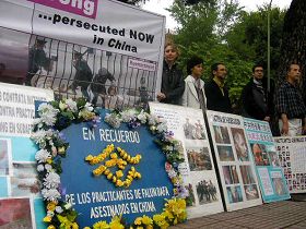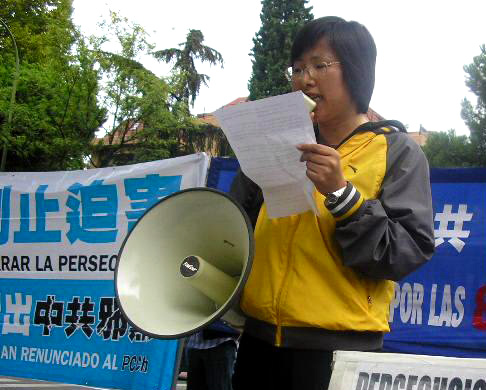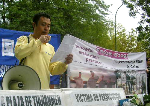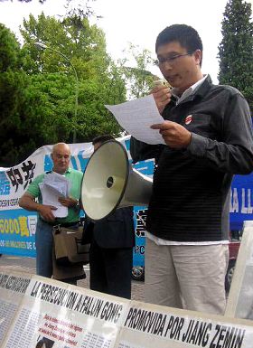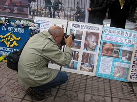 ![]() 西班牙学员在中使馆前揭露中共暴行 |