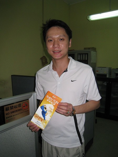 他欣喜的道出他的推荐:“各位香港朋友,大家如果没有欣赏中国古典舞,没欣赏过那么大型的中国古典舞的音乐剧、歌唱剧、现场演出的话,买票趁早,门票有限,只有七场,先到先得,大家迅速买!顺便恭祝神韵演出成功!”