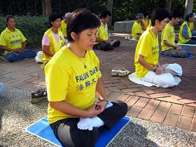 二零零四年某个清晨,她在官邸花园听到阵阵祥和悦耳的音乐,心想:“怎么会有这么好听的音乐。”不觉中感到身心舒畅,坐在椅上小睡十多分钟,回家后发觉从未有过的好精神。第二天再去官邸还是一样情况,探索获悉那是法轮功的炼功音乐。第三天,爱娟忍不住凑近观看学员炼功,询问之下得知法轮功是自由学炼,想学炼就来,不想炼就走,没有人会加以干涉,也没有任何条条框框限制。这天,爱娟跟着学炼,从此走進大法修炼。她说:“如果不是修炼法轮功,真不知道我这身体和精神的折磨,能忍受到什么时候。”