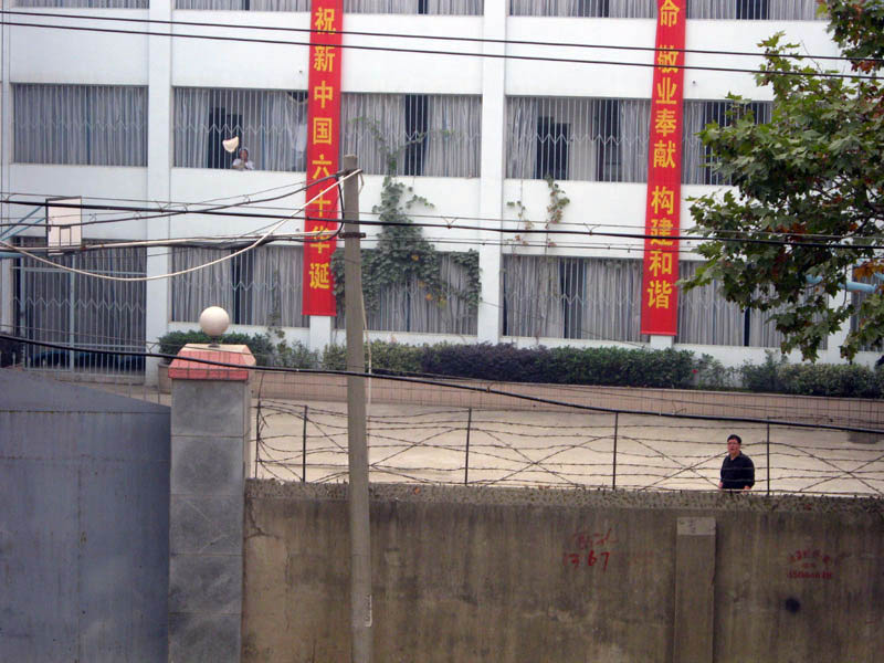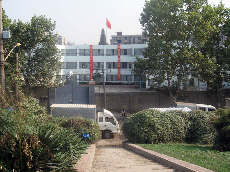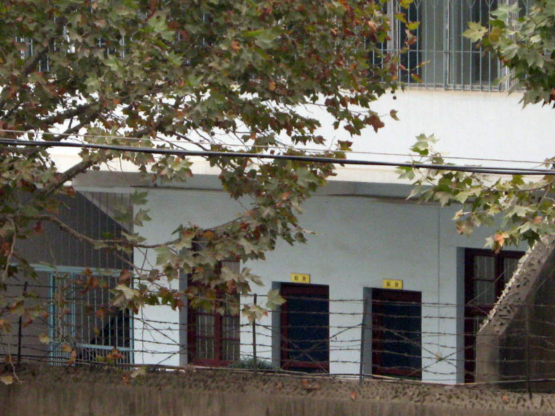 紧邻长江大堤的武汉市武昌区月亮湾,一个秘密监狱,是关押法轮功学员的杨园洗脑班,二层楼以上都是铁栏杆,没有放风的时间,这里没有门牌号码和任何标志铁门永远是紧闭的,上面有一个小洞可以递进东西去高墙、电网、永远紧闭的铁门。