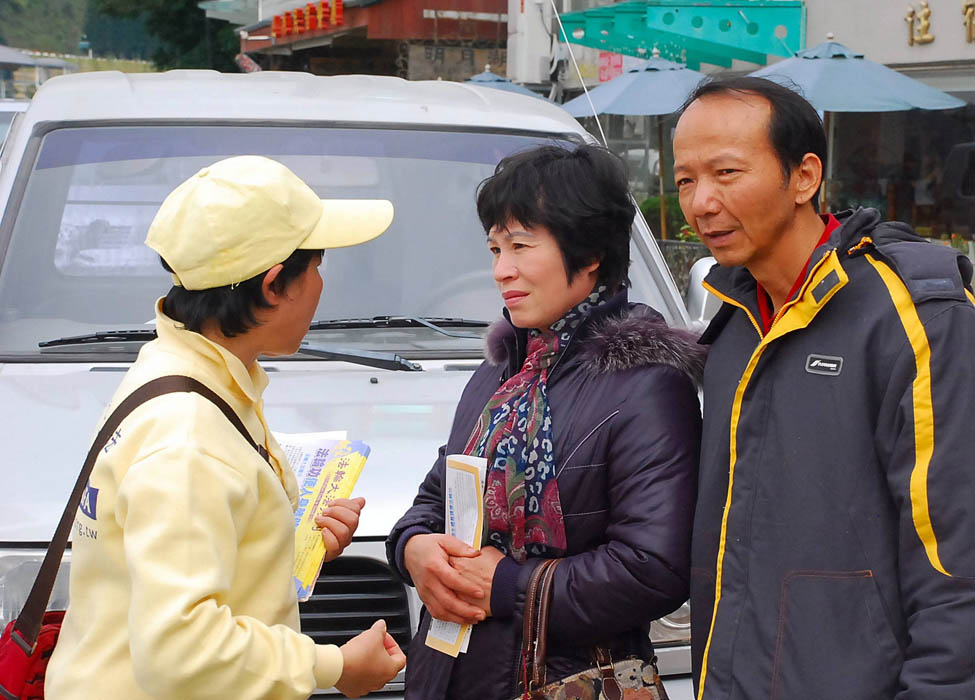 ![]() 各码头四周有法轮功学员向游客讲述迫害真相 |