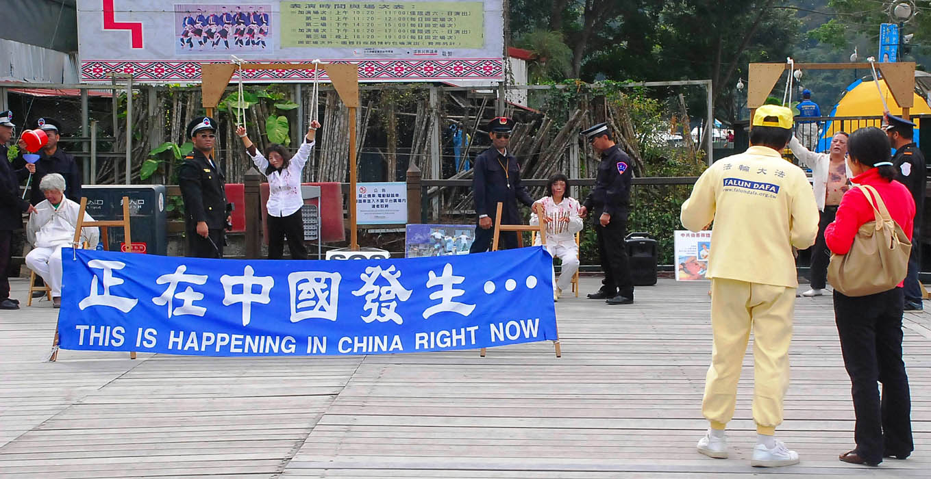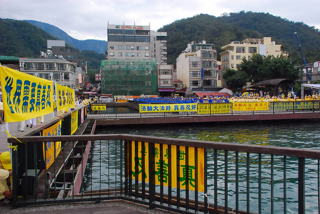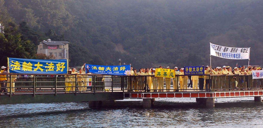 当天早晨,日月潭伊达邵德化码头播放着一位辽宁省公安向“追查迫害法轮功国际组织”叙说亲眼目睹一位三十多岁的女性法轮功学员被活摘器官的录音,那位女学员被活摘器官前还遭公安轮暴。听到录音的游客都露出悲愤的表情。一位近日采访过陈云林访台期间法轮功抗议活动的法新社记者表示,“法轮功被中共迫害的新闻全世界都知道了。”
