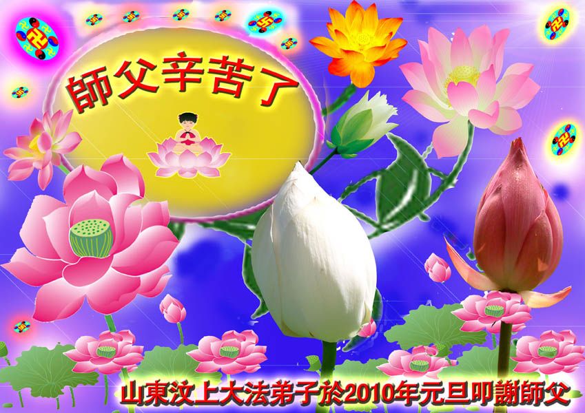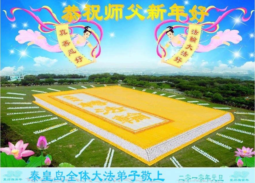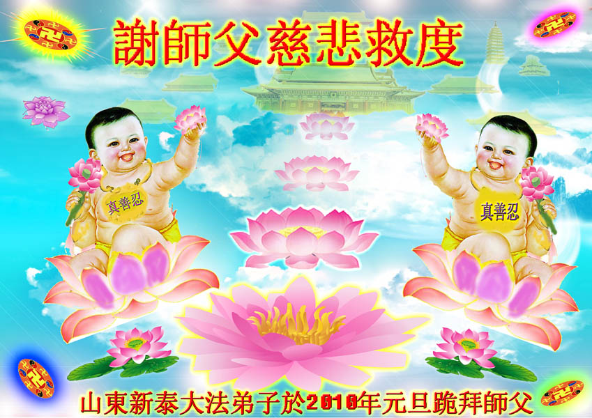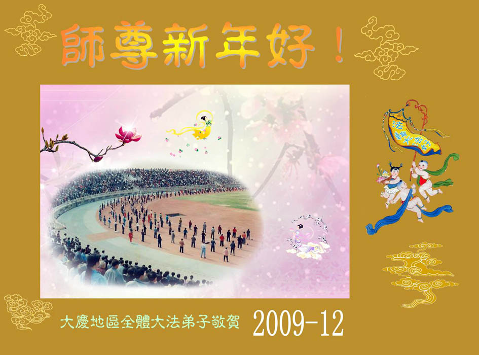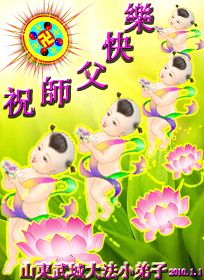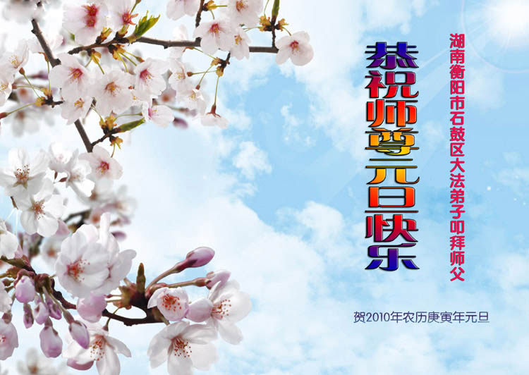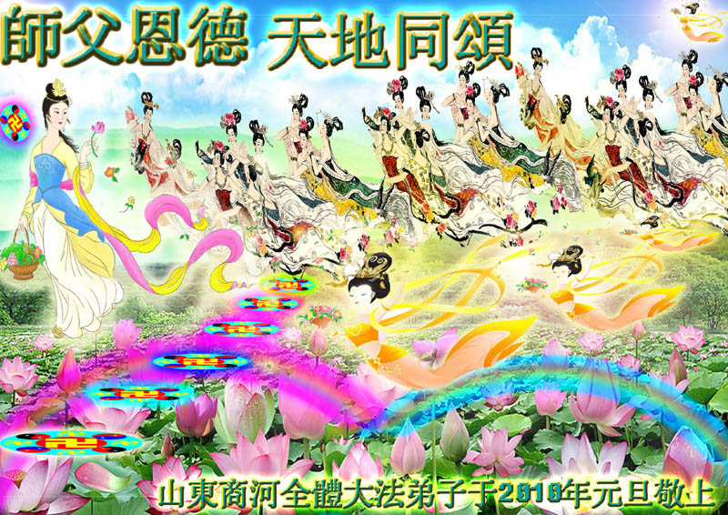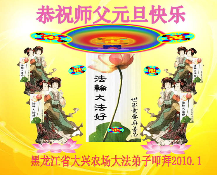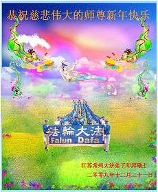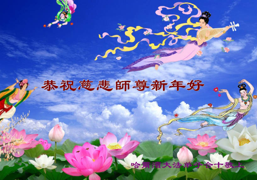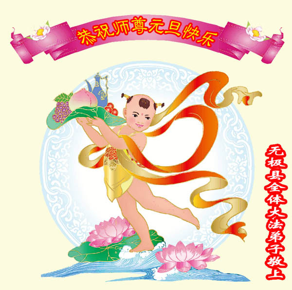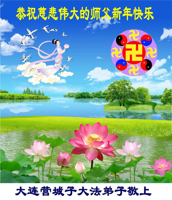 值此新年到来之际,德惠市大房身镇全体大法弟子向慈悲、伟大的师尊问好!恭祝慈悲、伟大的师尊新年快乐!