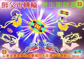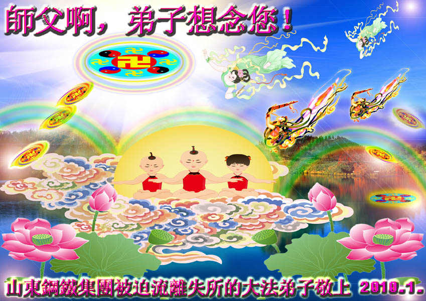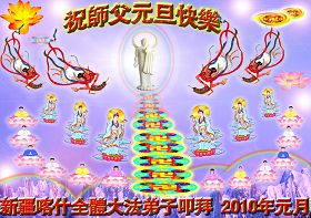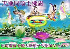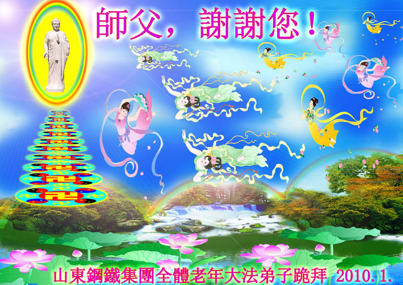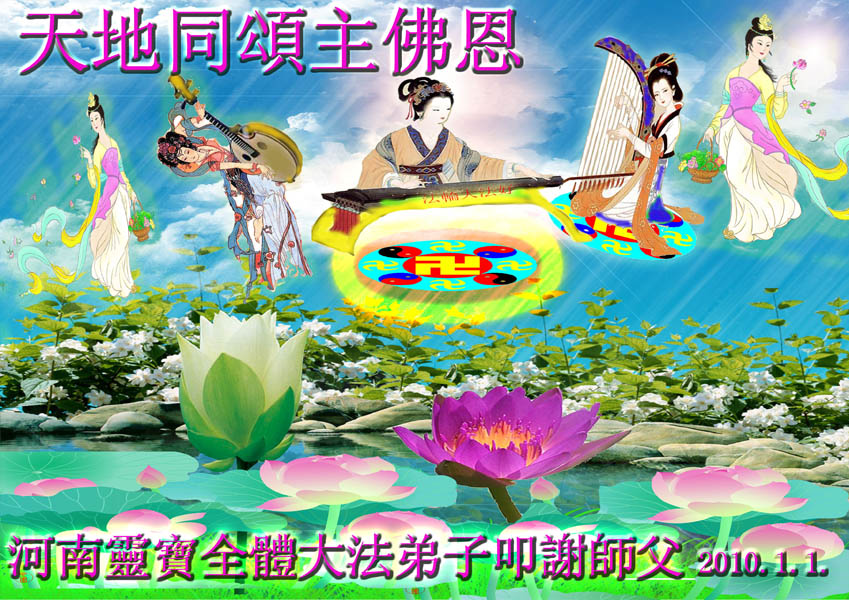 在二零一零年新年到来之际,郑州铁路局全体大法弟子恭祝伟大的师尊新年快乐!我们一定按照师尊的教诲,抓紧有限的时间,认真做好“三件事”,救度更多的众生,完成我们的史前大愿!感谢师尊的慈悲苦度,并向师尊合十叩拜。