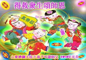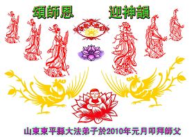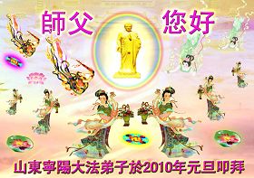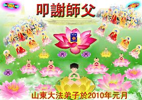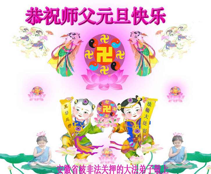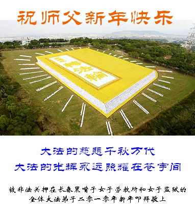 同时,我们也代表德惠市所有被非法关押在狱中的大法弟子们向我们慈悲、伟大的师尊致以节日的问候:师尊,过年好!