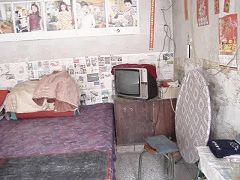 ![]() 王刚生前的家 | ![]() 简陋的屋内摆设 |