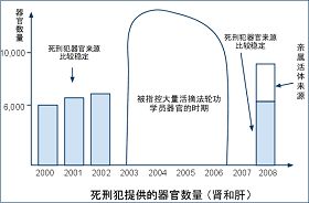 但是,在2003-2006年间,出现了一个很大的意外,器官移植数量大幅度上升(每年有1万2千到2万例,本文第五部分有详细说明)。显然,这是仅用死刑犯器官难以解释的。