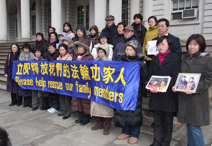 ![]() 纽约法轮功学员在纽约市政厅前举行记者会 |