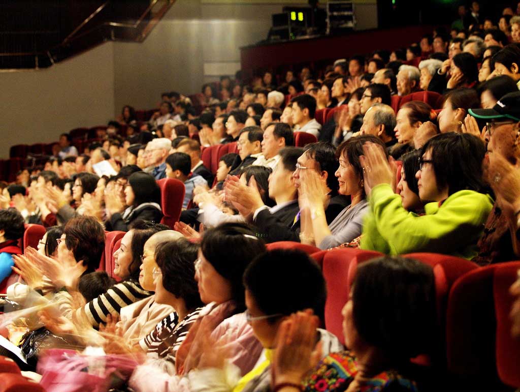![]() 二零零九年二月廿七日神韵于台湾台北的第三场表演,吸引了近三千名观众 |