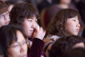 从吉林省来韩一年多的朴女士,二月四日晚观赏神韵首场演出后,感动的泪水禁不住的流了出来。她说:“以前从没有看到这样的演出,没想到能在韩国看到这种节目,真的是非常激动,非常高兴。这些节目我都很感动的,印象最深的是警察把那个男的打倒在地上,孩子趴在爸爸身上哭,唉,以后娘儿俩该怎么办呀!神最后把他接走了,真感动人。”