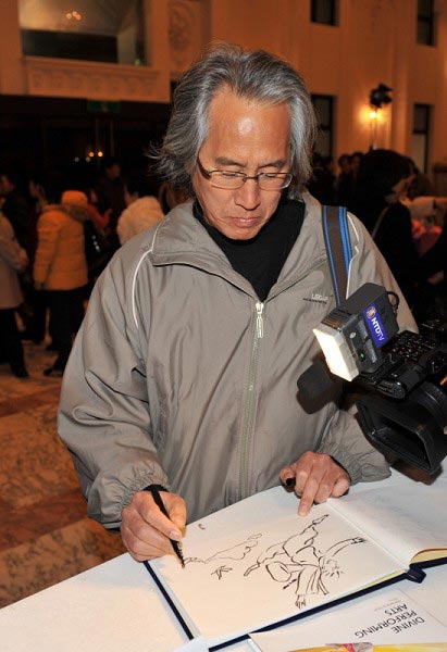 ![]() 韩国国宝级漫画家朴在东进场前在大厅即时作画 |