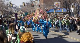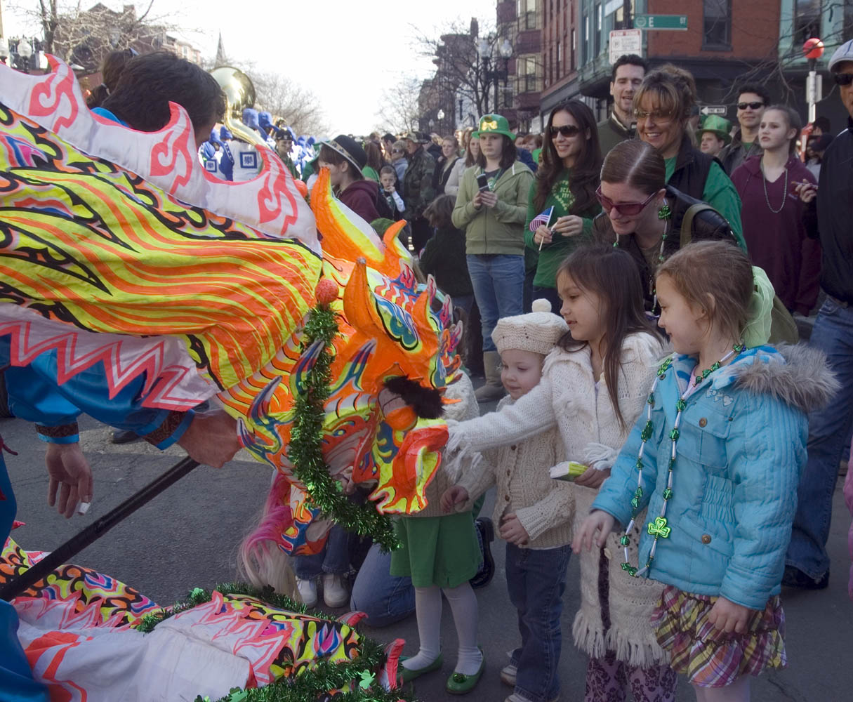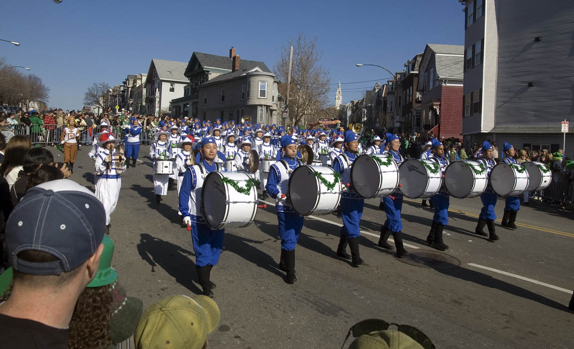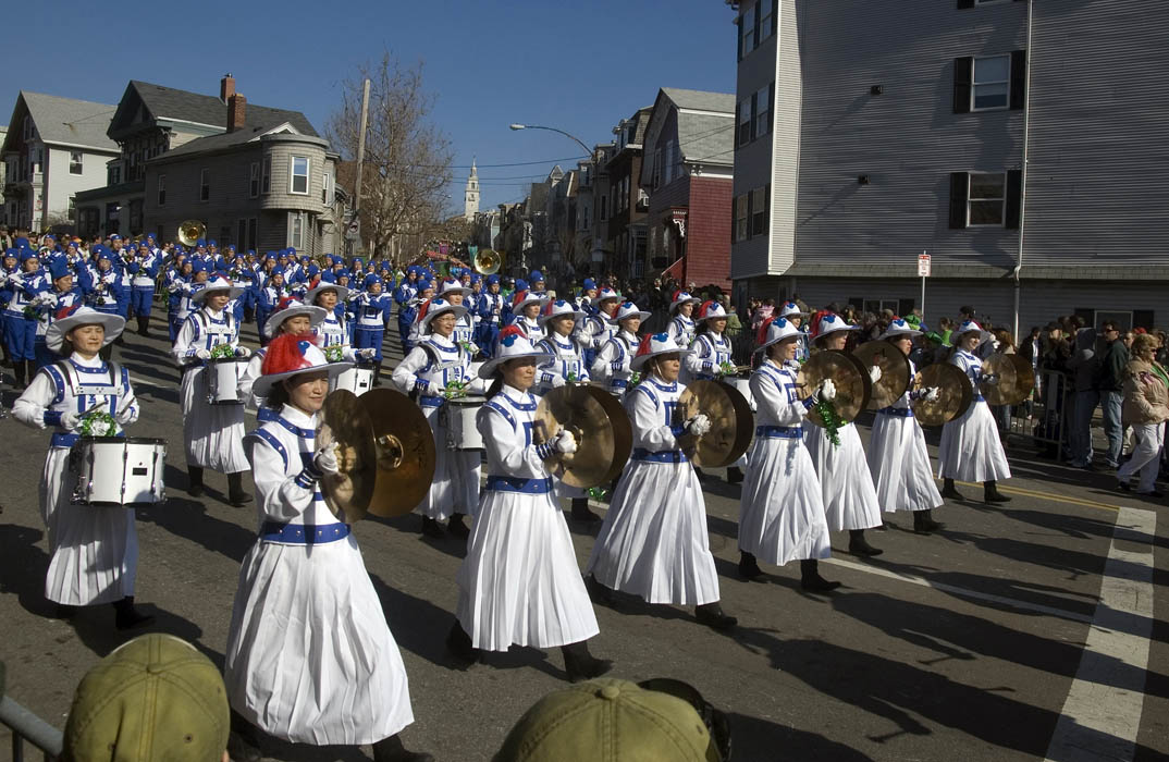 自从一九零一年以来, 波士顿圣派翠克日游行已成为当地一个欢庆的节日。波士顿人兴高采烈地穿着绿色衣、挂着绿珠子、戴着大绿帽子来看游行。