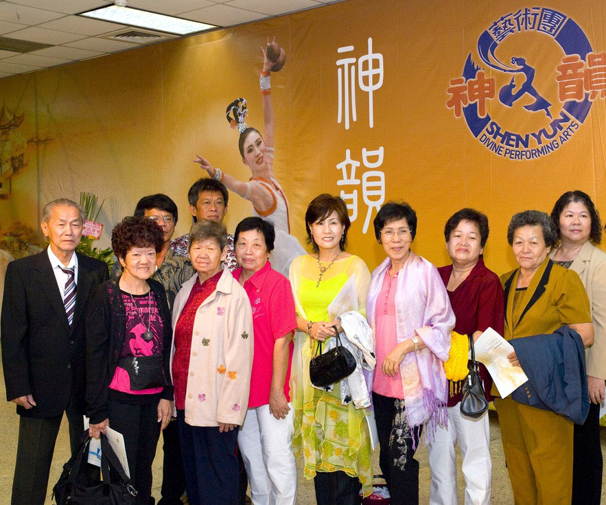 今年台湾许多政界、工商界、艺界的精英,不仅自己慕名而来,还「组团」与亲友一同欣赏神韵。台北县五金界的“新海五金联谊会”与“融融会”,会员人数约六十人,今年将“观赏神韵”列为年度活动,加入亲友人数之后,组成一百七十人声势浩大的团体前来观看。散场之后,还轮流在神韵晚会巨幅海报前合影留念,引起旁人一阵关注。