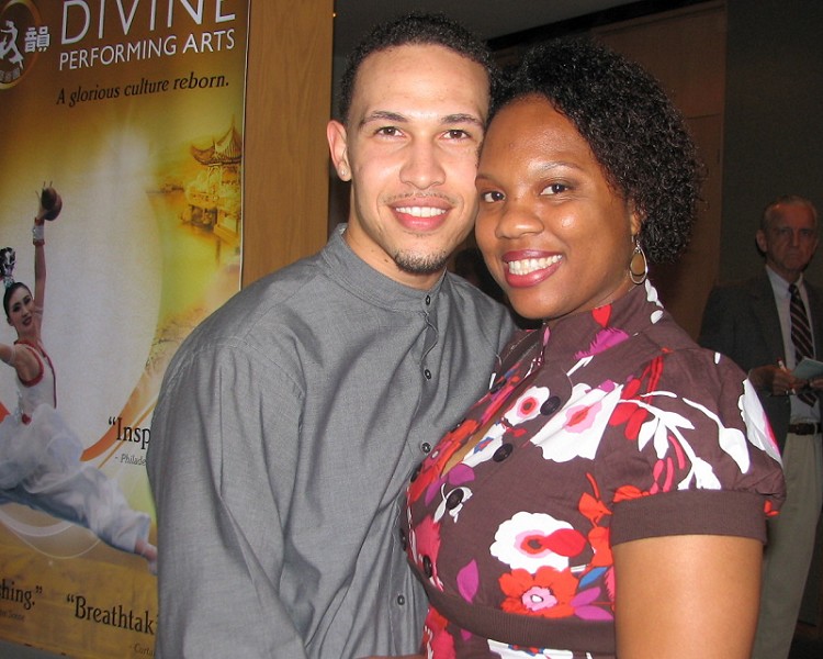![]() 图像设计艺术家亨利与友人安卓莉亚一起观赏了神韵晚会 |