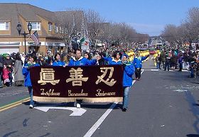 ![]() 长岛最东部莫泰克镇圣派翠克节游行中的法轮功队伍 |