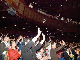 ![]() 台北县五金界的“新海五金联谊会”与“融融会”一百七十人共同前来观赏神韵 |
