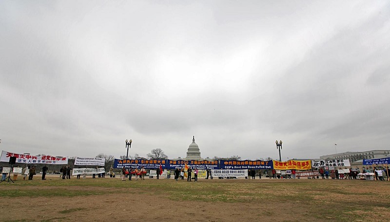 ![]() 2009年3月1日下午,美国首都华盛顿及周边地区的民众在国会山集会,声援五千万中国人退出中共党(团、队)。 |