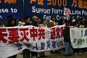 ![]() 2009年3月1日下午,美国首都华盛顿及周边地区的民众在国会山集会,传递五千万中国人退出中共党(团、队)的消息。 |