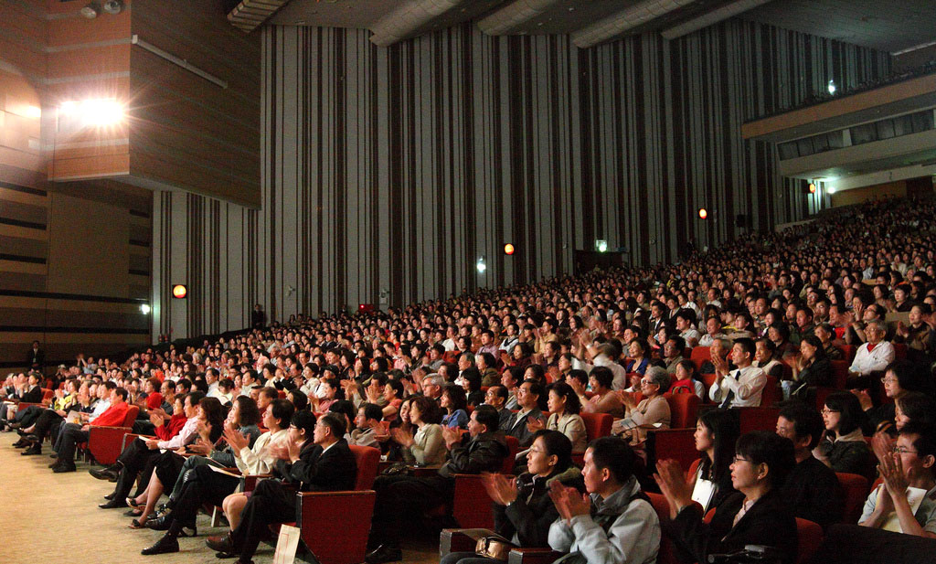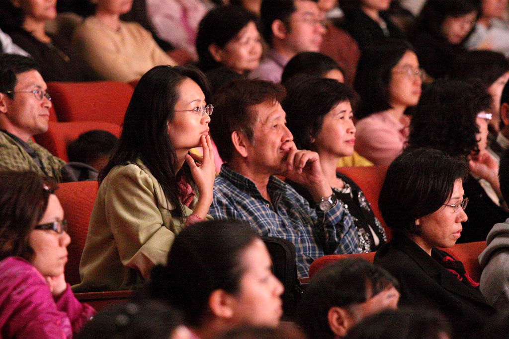 ![]() 台中观众专注欣赏神韵演出 |