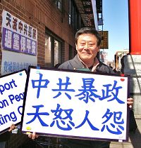 ![]() 举着“中共暴政 天怒人怨”横板的姚先生特意赶来声援五千二百万中国人退出中共恶党 |