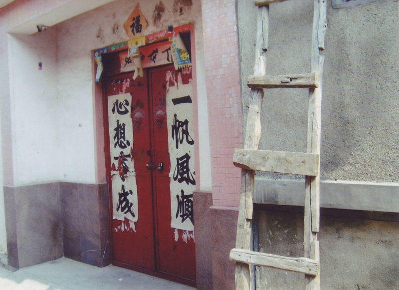 二零零九年三月十七日,杜祥忠的妻子公凤英在县城租房处和邻居聊天,突然听到外面人声嘈杂,邻居说:“我没锁门,得赶紧回家,咱院里经常来贼。”公凤英送邻居走时,一敞开大门看见梯子竖在大门南边(见上图),一群便衣站在门外。公凤英赶紧关门,便衣们强行推门而入。县“六一零”小头目方思民已爬梯子蹑手蹑脚的爬上南平房,一看门开了,赶紧溜下来闯入杜祥忠家。