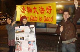 瑞典游客支持法轮功 谴中共迫害