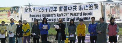 ![]() 法轮功学员加拿大中使馆前和平抗议中共迫害,纪念“四·二五”和平上访十周年 |