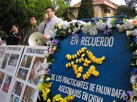![]() 西班牙部份学员在马德里中使馆前请愿,纪念“四·二五”,并要求停止迫害。 |