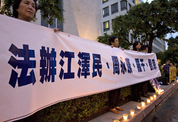 ![]() 洛杉矶的法轮功学员和支持者在中领馆前,举办纪念“四·二五”十周年烛光集会。 |