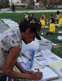 来自北京的青松(化名)先生,第一次利用来美出差的机会看到海外法轮功学员的活动,很兴奋,也深有感慨:“现在老百姓没有人不骂中共的。大家都不会认为法轮功有什么错。大家看到法轮功学员就是要求能自由的修炼,对政治与政权都不感兴趣。法轮功这些年一直通过各种方式告诉民众真相,这些都起到了潜移默化的作用,人们也越来越了解(法轮功)了。”