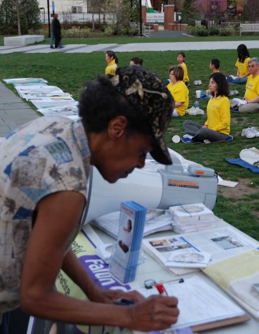 纽约市皇后区社区领袖马萨(Marsha)女士特别强调:“法轮功学员长期以来坚持自己的信仰,用和平的方式讲真相、制止中共的邪恶迫害,为我们的社区树立了典范。”