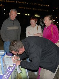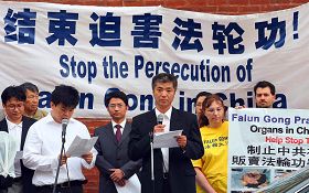 ![]() 2009年4月24日,数百名法轮功学员及支持者在多伦多中领事馆前集会,纪念“四·二五”十周年。 |