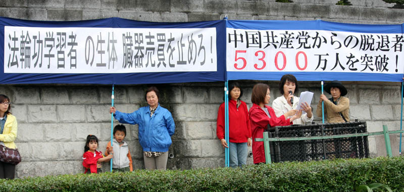 在宣读声明的时候,一位不明真相的来自中国的年轻男子,气势汹汹地对着法轮功学员说:“你们这是在搞什么?真是丢中国人的脸。不要让日本人笑话我们了”。面对被中共蒙蔽的人,学员们以冷静温和的给这位年轻男子介绍了法轮功及迫害真相。听了半个多小时的真相说明,这位男子终于对法轮功有了真实的了解。