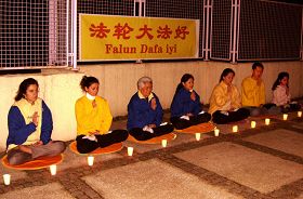 学员们在活动中播放的这首名为《烛光》的歌曲,和着满天的星斗和点点烛光,向人们讲述着法轮功学员抵制迫害、讲清真相的悲壮故事,也传达着守夜者“正义一定会战胜邪恶”这一坚毅恒久的信念。