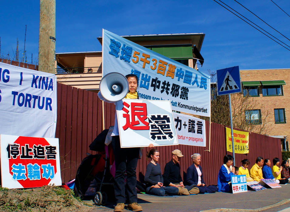 学员们打出了“世界需要真善忍”、“停止迫害法轮功”、“声援五千三百万中国人民退出中共邪党”等横幅,并以广播的方式揭露了中共的邪教本质,唤醒世人,共同制止迫害。
