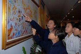 他接着说,“真善忍国际美展”主要以油画为主,学生在学校比较少接触到油画创作素材,这是一个认识油画很好的机会。此外,这是一个主题性的画展,传达法轮功学员对信仰坚忍不屈的道德意涵,可以让学生学会尊重别人信仰,认识到善恶有报。