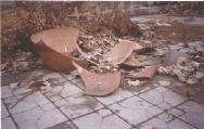 ![]() 赵传武家,房门及窗扇都被摘掉 | ![]() 赵传文家窗户,窗扇被摘,玻璃被砸碎 | ![]() 赵传文家院内,面缸被摔碎 |