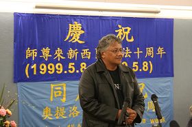 ![]() 新西兰法轮大法协会负责人于景方致辞 |