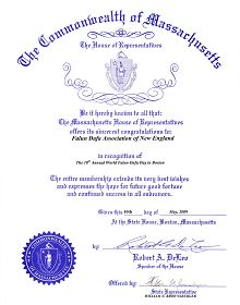 麻萨诸塞州众议院向新英格兰法轮大法协会致以最衷心的祝贺!