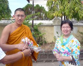 ![]() PRATART CHENGCHUM庙,和尚主动索取法轮大法简介 |
