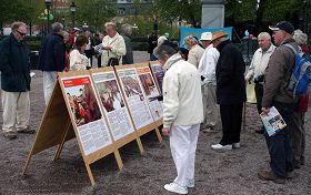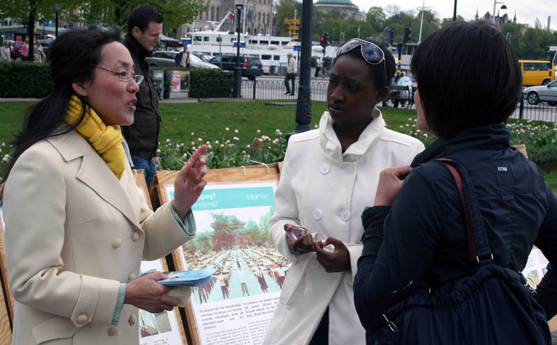 纯朴善良的瑞典人很珍惜和法轮大法的万古机缘,这些在大法中受益的法轮功学员,看到中共自一九九九年“七•二零”以来对法轮功发动的这场残酷的迫害,导致数以万计的修炼人被非法监禁,至少三千多人失去生命,长达十年的这场迫害并未结束,心情很沉重。为了让更多的人了解法轮功,揭露中共欺骗世人的谎言,十年来他们珍惜每一次机会,坚持不懈地向世人讲清法轮功受迫害的真相。