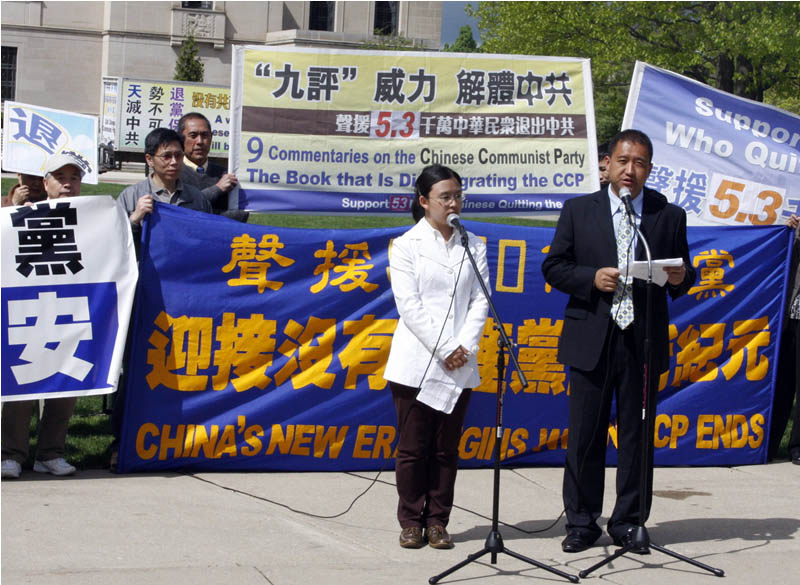 海外中国民主联盟及中国学生学者独立同盟的黄慈平也为本次活动发来声明,声明中说:“五千四百万民众把解体中共又向前迈了一步。这不仅仅是他们个人的道德升华和解放,而是对整个中国的巨大贡献,感谢五年前的大纪元社论《九评共产党》,揭开了千万民众退出中共的序幕。”