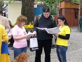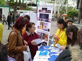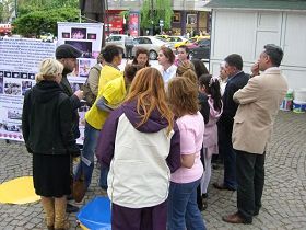 ![]() 法轮功学员向人们介绍法轮大法,揭露中共对法轮功的迫害 |