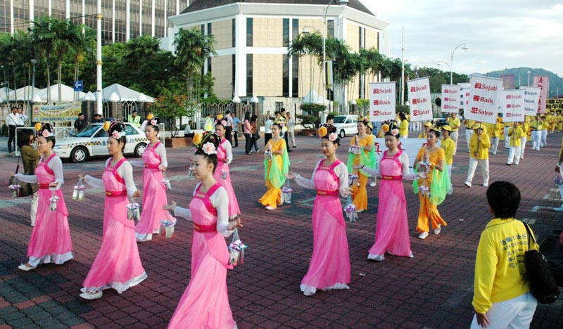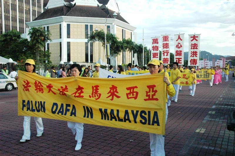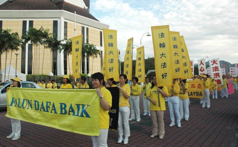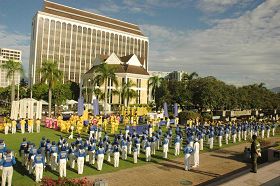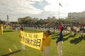 ![]() 法轮大法队伍从怡保市政局前整齐地走向广场 |