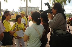 ![]() 媒体采访法轮功学员。 |