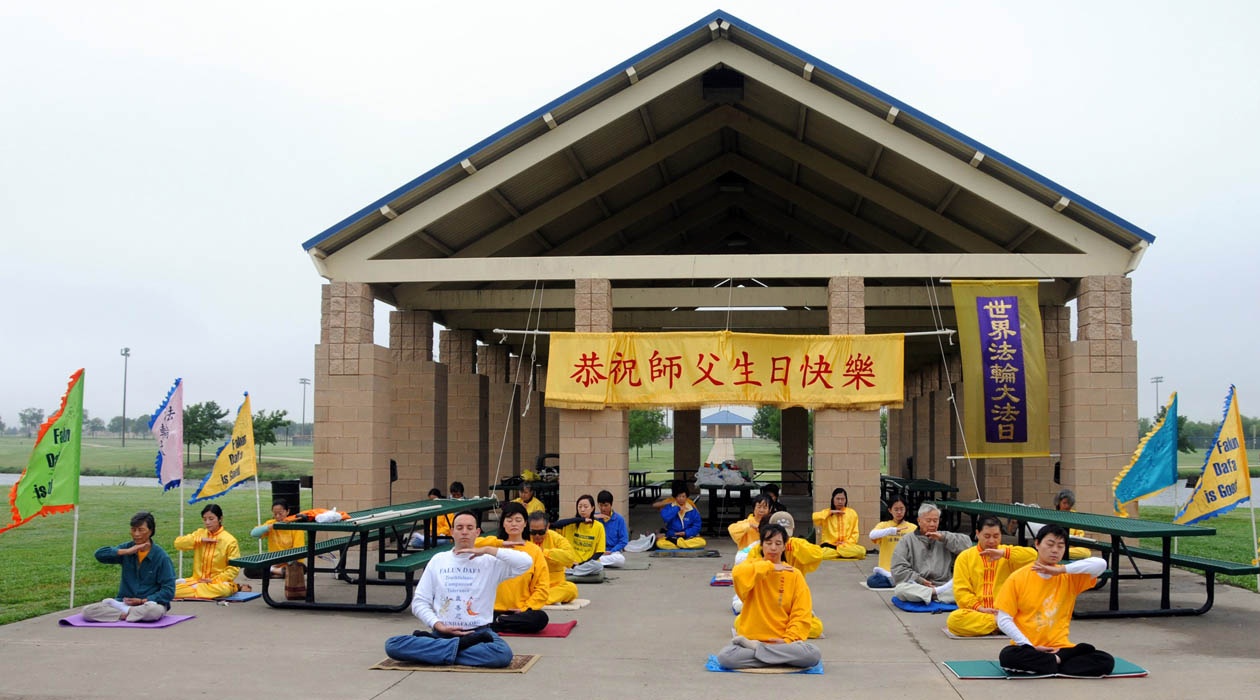 ![]() 德州达拉斯地区的法轮功学员在布兰诺市Russell Creek公园集体炼功,庆祝法轮大法洪传世界十七周年暨第十届“世界法轮大法日” |