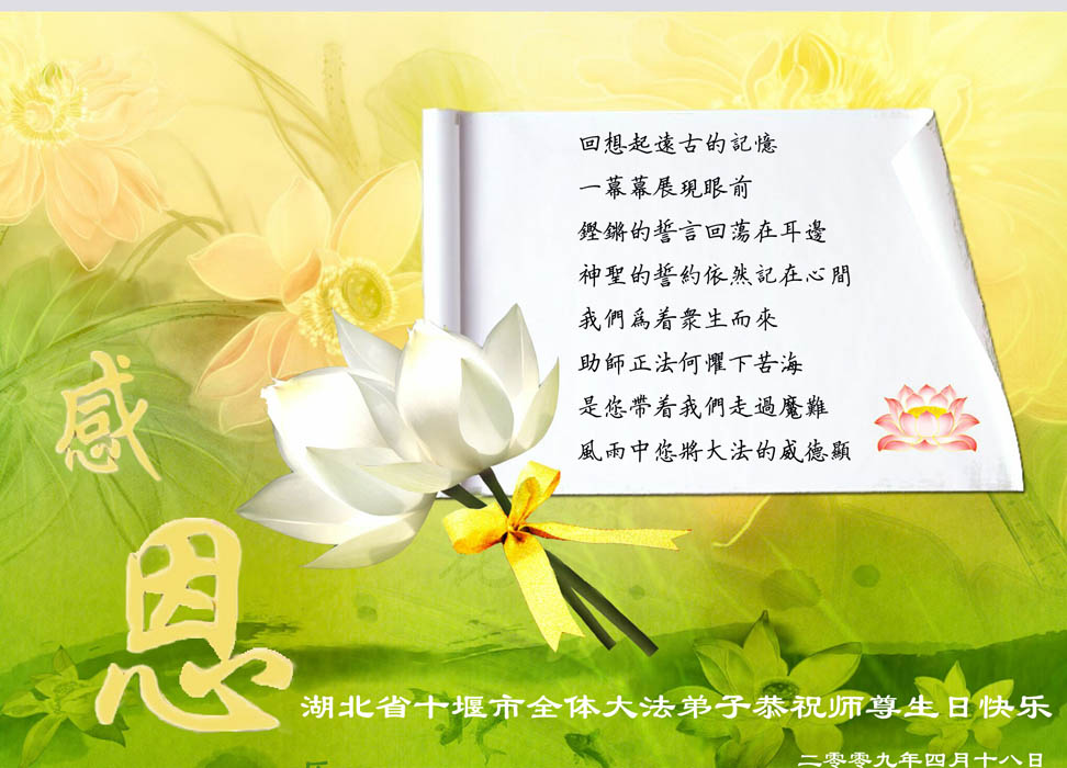 李洪志先生家乡的同事:祝你们师父好,祝你们节日快乐!