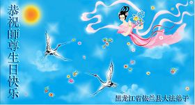 ![]() 波士顿法轮功学员恭祝师尊五十八岁华诞 |
