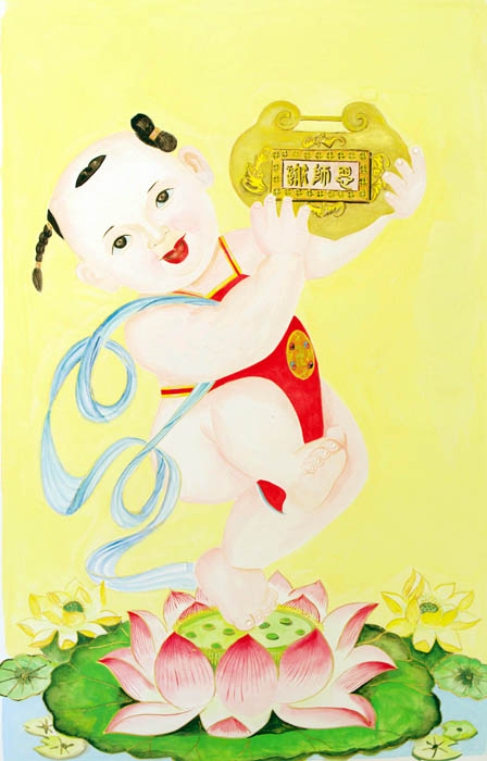 ![]() 小女孩得到大法弟子送的莲花,赞道:“太美了!” |