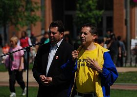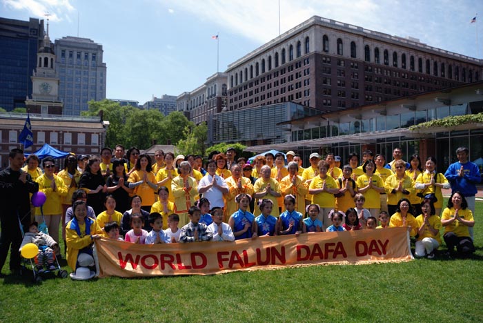 ![]() 大费城法轮功学员在独立广场齐声祝师父生日快乐,谢师恩! |